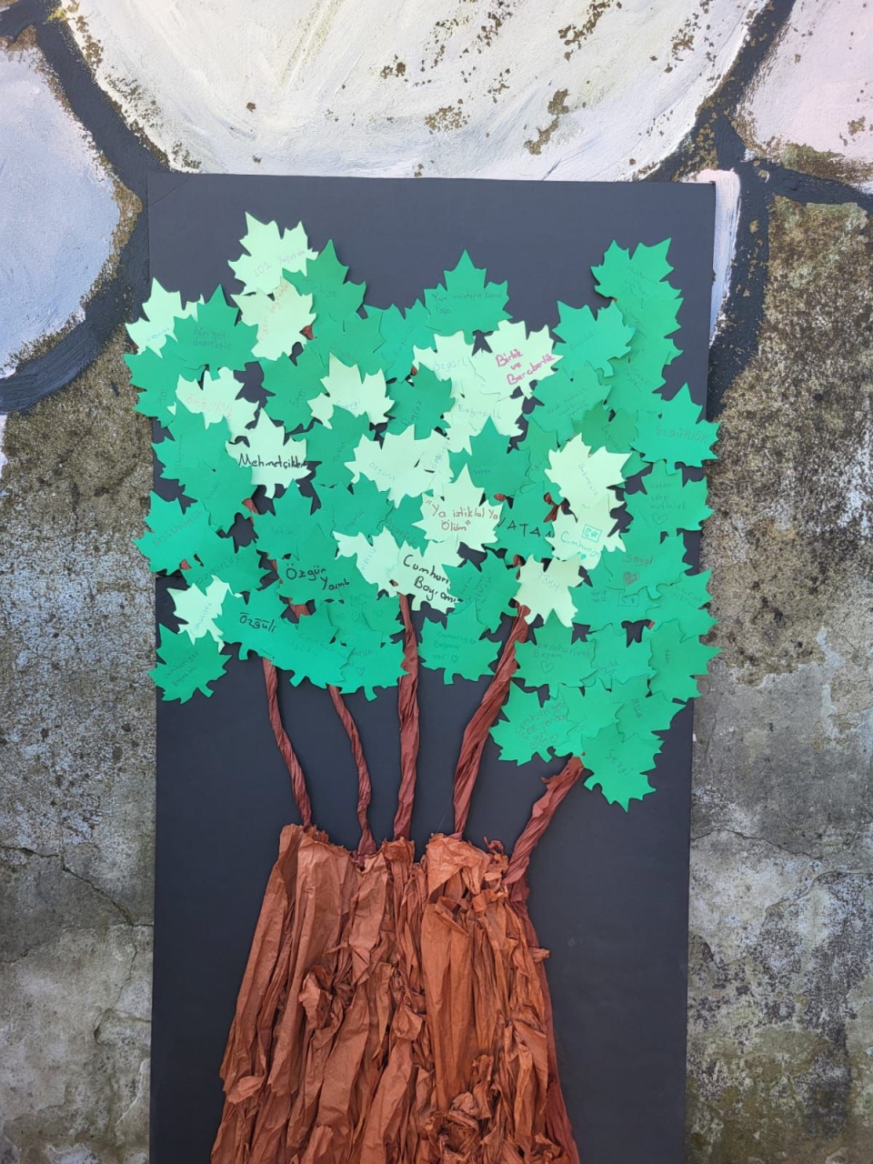 Etkinlikler kapsamında düzenlenen “Cumhuriyet Ağacı” çalışmasında öğrenciler, “Cumhuriyet sizlere ne kazandırdı?” sorusuna verdikleri yanıtları yapraklara yazarak ağaca astılar. Renkli yapraklarla süslenen bu anlamlı ağaç, gençlerin Cumhuriyet bilincini ve geleceğe dair umutlarını yansıttı.